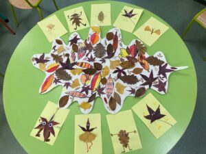Nous avons découvert ce qui nous permet d’identifier l’automne et ses couleurs et nous avons réalisé une composition amusante.