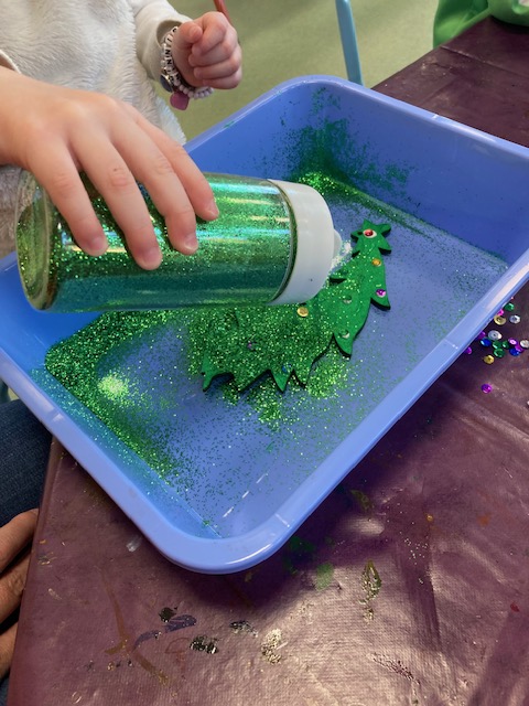 Les petites mains s’affairent pour que tout soit parfait! des paillettes, des étoiles et toutes les couleurs de Noël seront de mise!